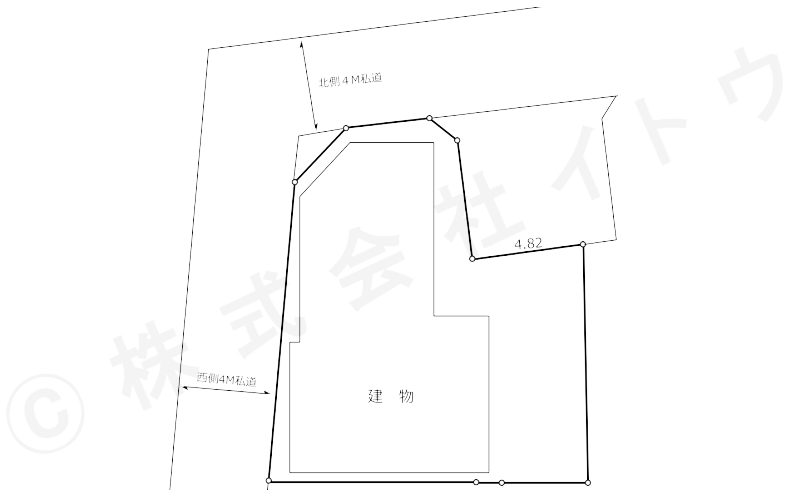 | 接道状況 | 西側4M私道/北側4M私道 | ||